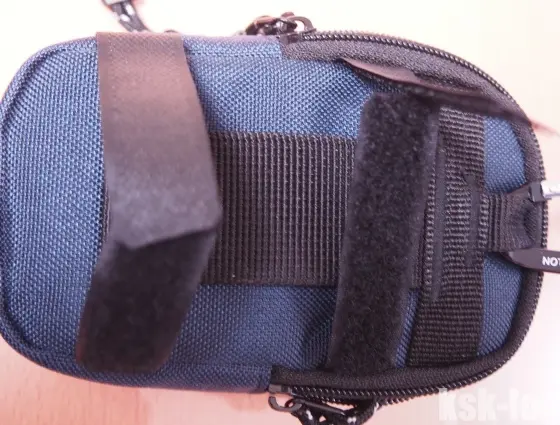 ケースのつくりはしっかりしていて、背面にカラビナとベルクロがついていて、リュックへの固定などもできるようになっていました。