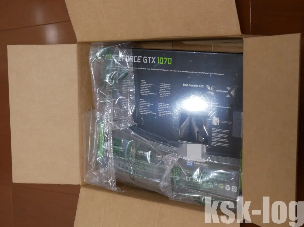 先日の記事においてAmazon.com(米尼)で購入し、到着したEVGA GTX1070 FTW2 iCXを挿入します。