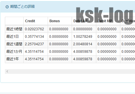 VIP Poolの収支確認のスクリーンショットが次の画像となります。