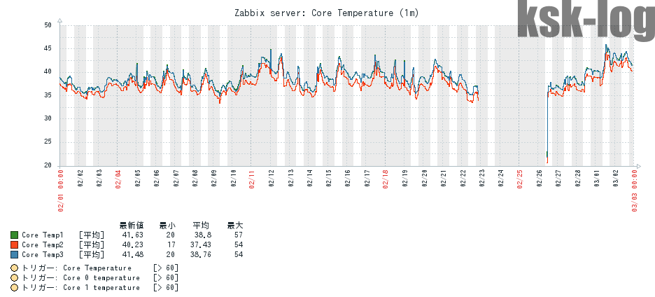 以下に順に1月、2月、3月のCPU温度のグラフを載せます。