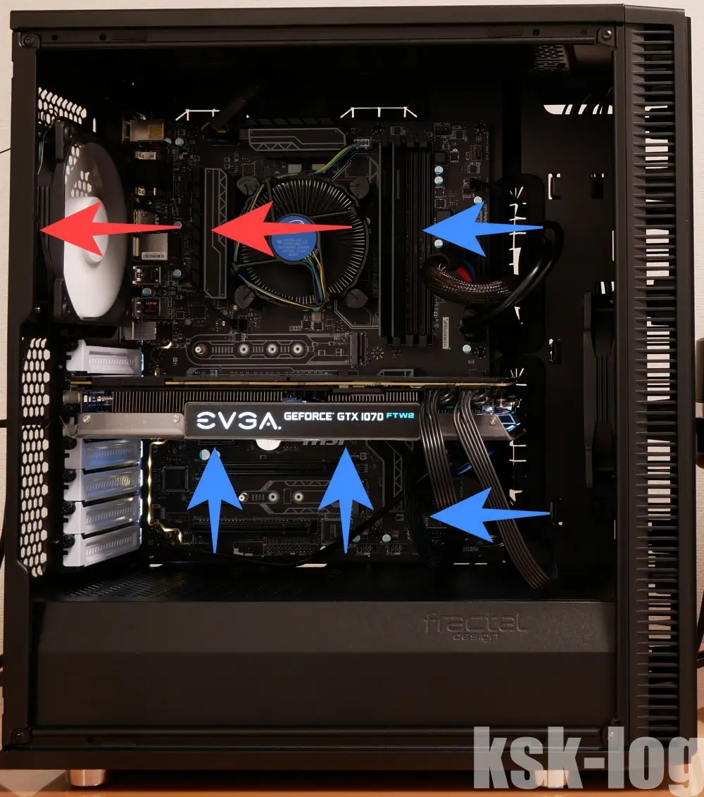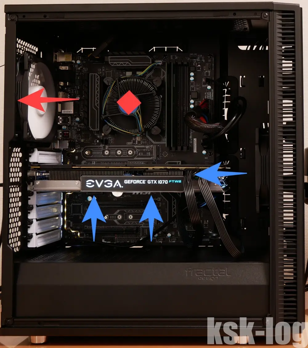 - 前面ファンを増設してGPUの冷却効率を上げる