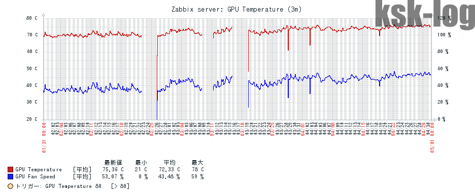 - Zabbixで1か月のCPUとGPUの温度・負荷を確認