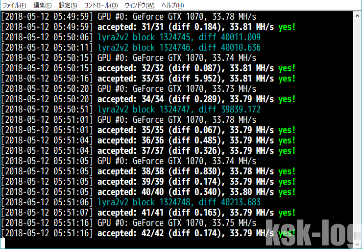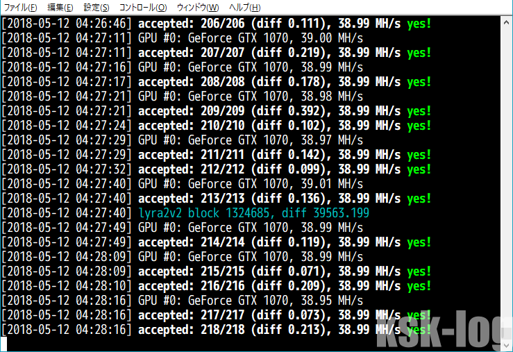 (※ccminerはdocker上で動いているため、JSTではなく時刻がずれています)