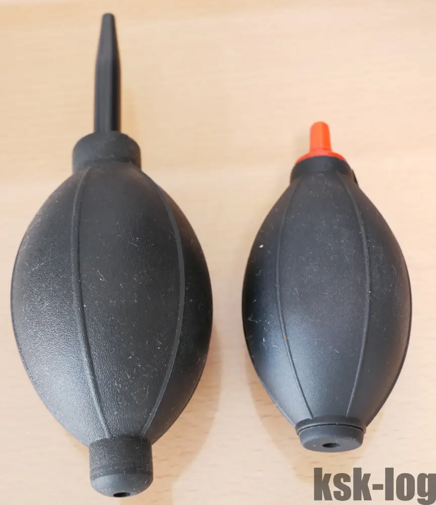 ピンポイントで空気を吹き付けるなら先端部の長さはそこそこ必要でしょうし、KMC-59はあくまで持ち運びの利便性を優先した形状ということでしょう。