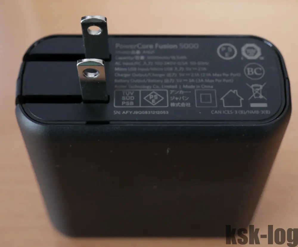 PowerCore Fusion5000は単独のモバイルバッテリーとしてみれば、容量の割には大型ですが、USB充電器を兼ねているので仕方ありません。