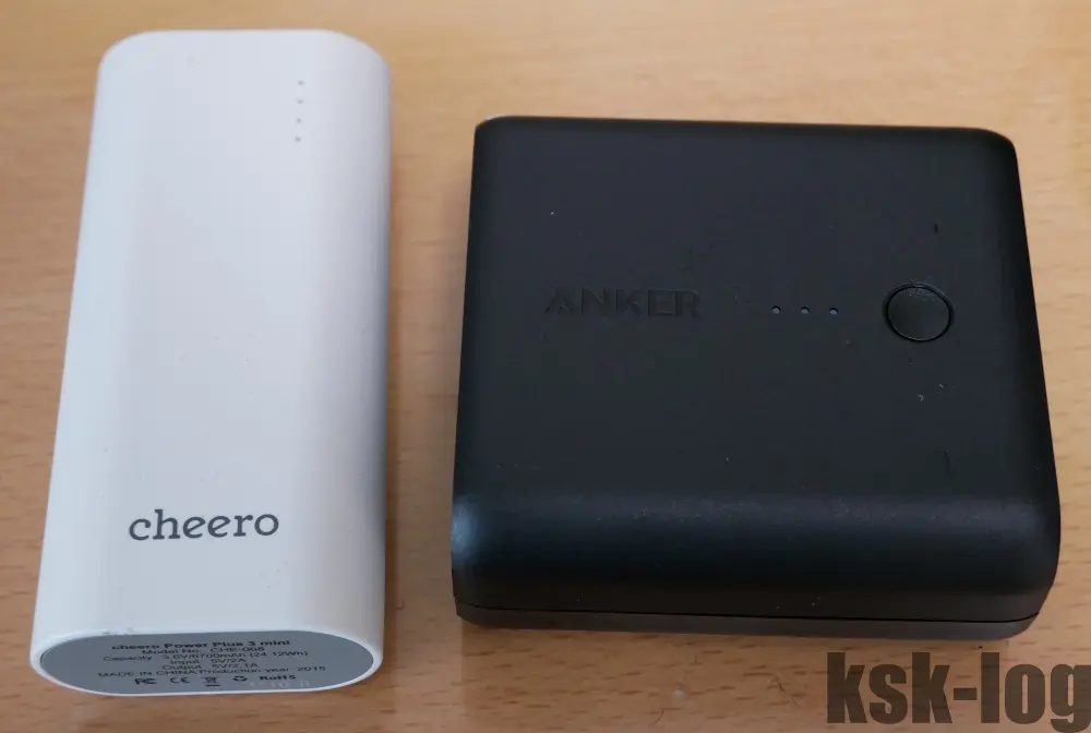 また、普段使いのモバイルバッテリーであるCheero Power Plus 3 mini 6700mAhと比較するとやはり大きいですね。