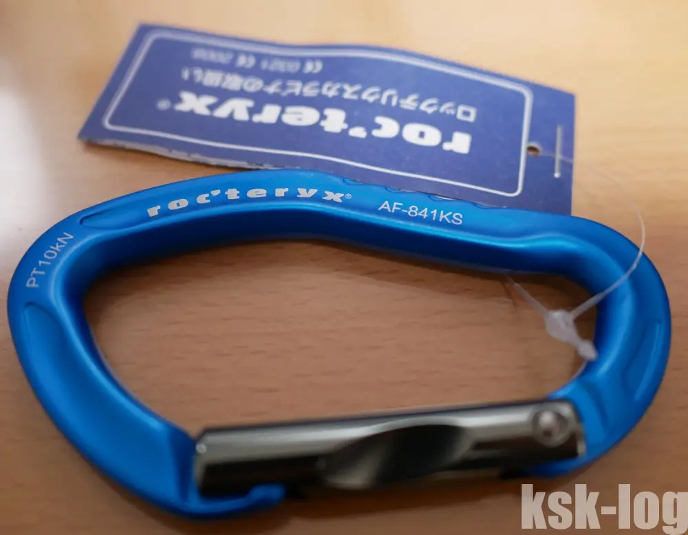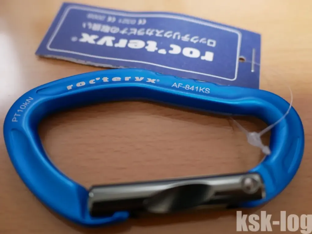 Roc’teryxのものは本格的な登山用カラビナでかつ中型、E-Valueのものは非登山用のものかつ大型となっています。
