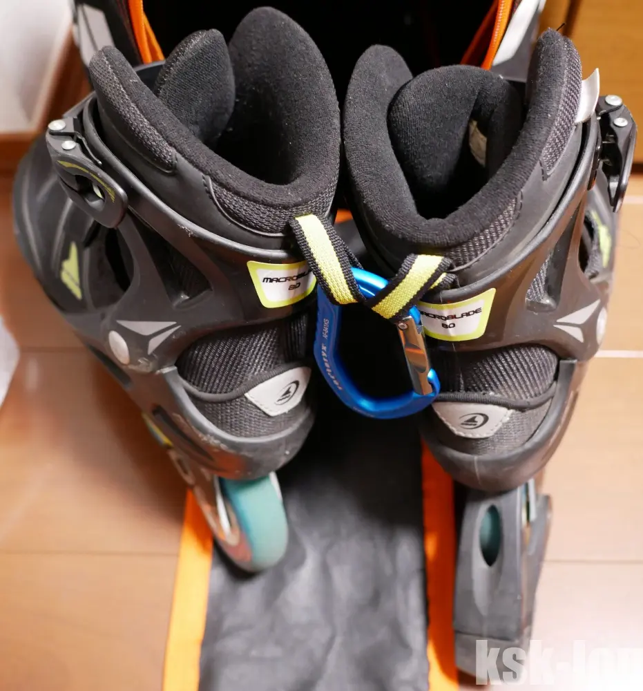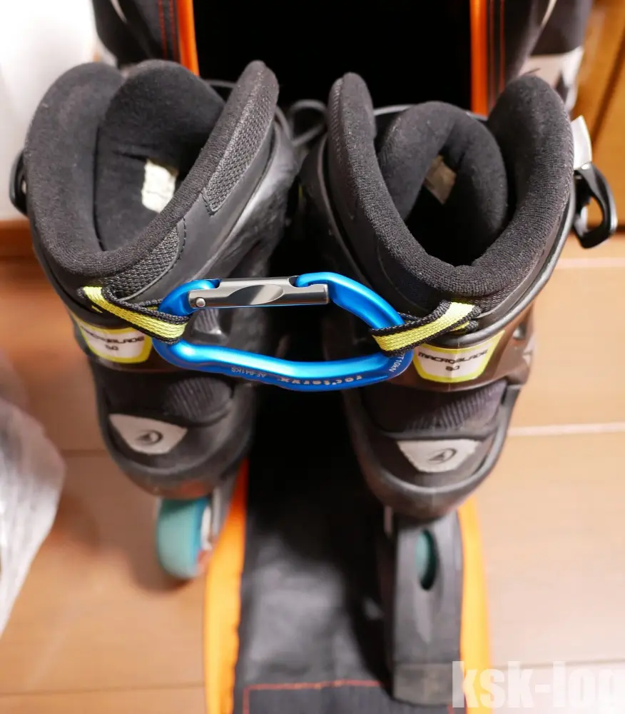 インラインスケートの持ち運び時にブーツを固定するためにカラビナを購入しました。