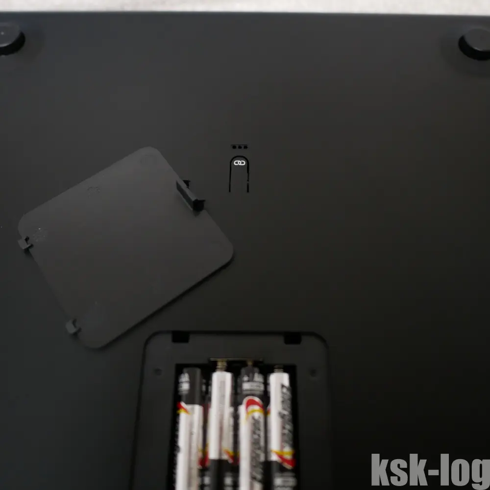 以下は裏面の電池収納部と、電源ボタンです。
