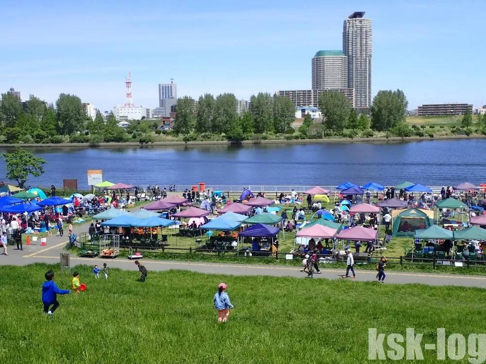 GW10連休の初週末ということもあり、イベント参加者を含めて河川敷利用者は非常に多かったです。