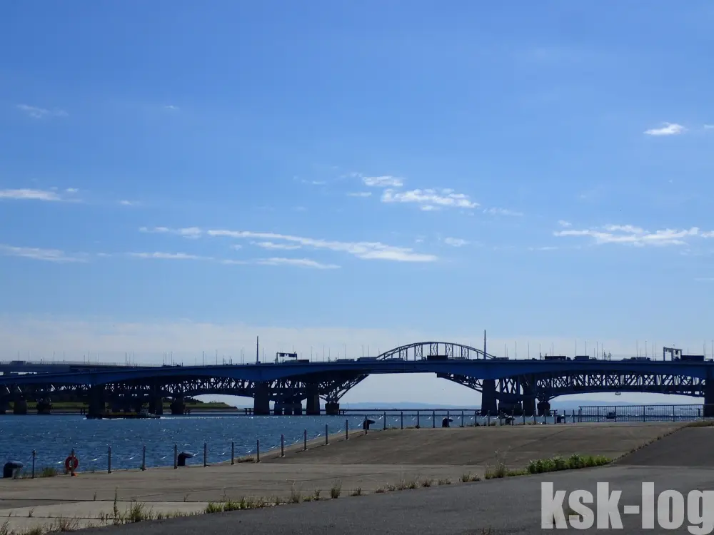 往復の折り返しとなる河口付近です。結構日差しが強かった覚えがあります。
