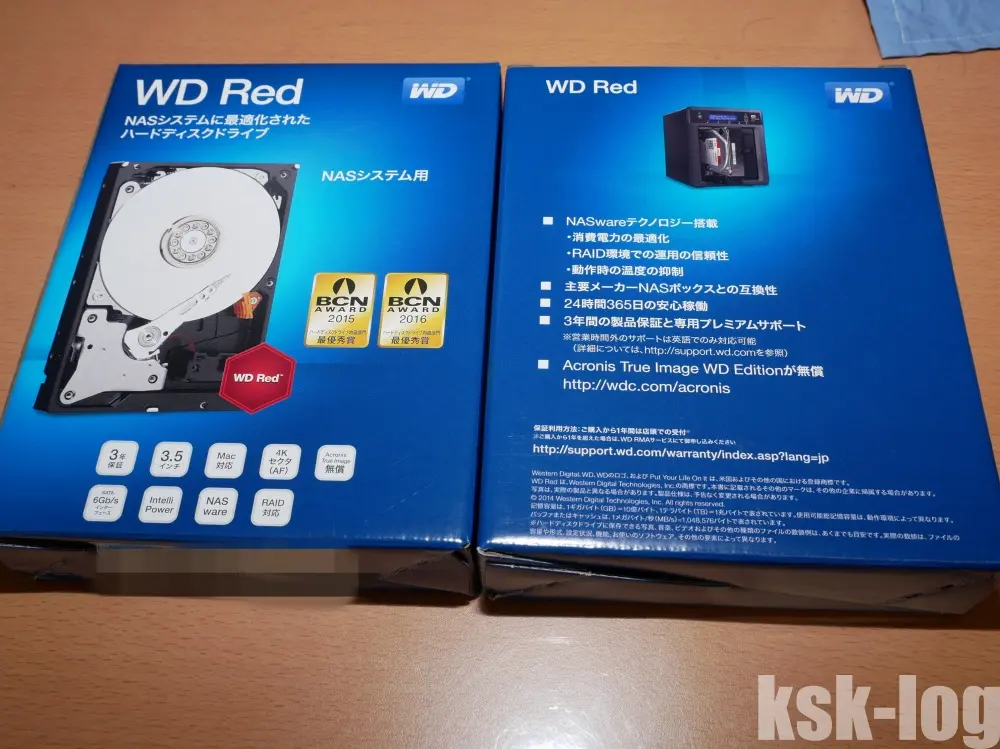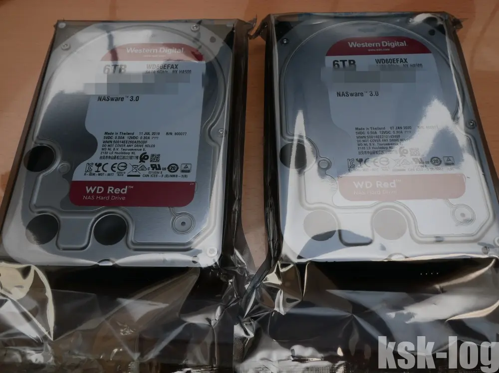 私は定番のWestern Digital Redシリーズから6TBのものを選びました。(WD60EFRX-RT)