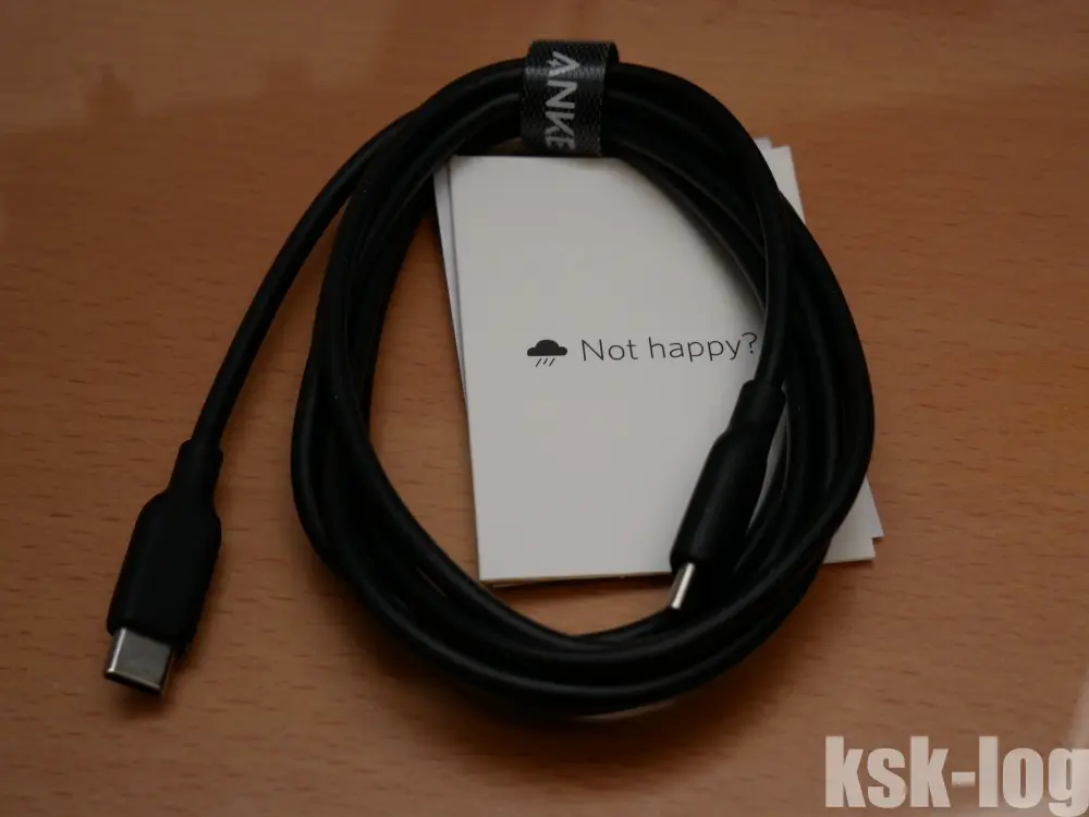 USB-C PDケーブルには定番のAnkerのPowerLine III USB-C & USB-C 2.0 100W ケーブル (1.8m)を選択しました。100Wはオーバースペックですが、ギリギリを狙うよりは良いでしょう。