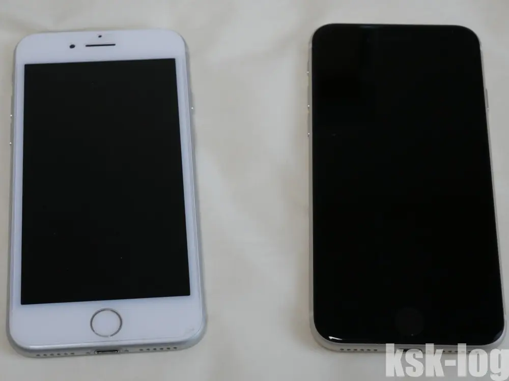 まだ7の方は白い全面保護フィルム外していませんが、左右に並べた色の違いは以下のようになってます。
