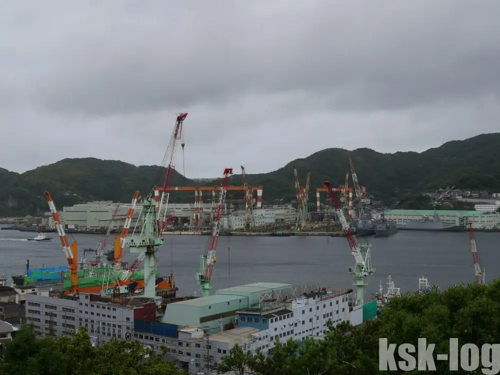 ついでにグラバー園の中から三菱造船の香焼ドックを見ることが出来ます。ただ、今は大島造船所に事業を譲渡されている途中のようです。一応まだ三菱ロゴは残っています。