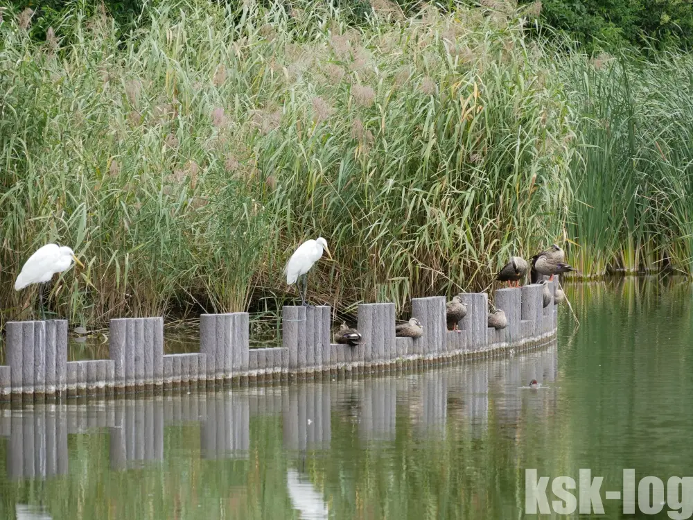 こちらは自然観察センター脇の小屋から見た写真で、等間隔に止まっているのも面白いですね。