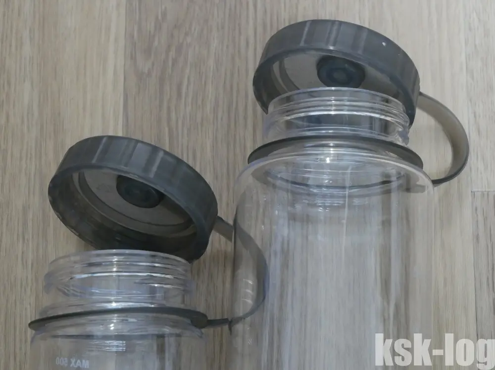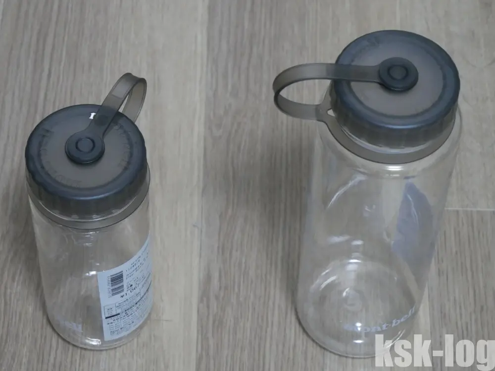 購入時は定番のナルゲンボトルは品切れだったので、同じくBPAフリーのモンベルのクリアボトルの0.5Lと1.0Lをそれぞれ1本ずつ購入しました。