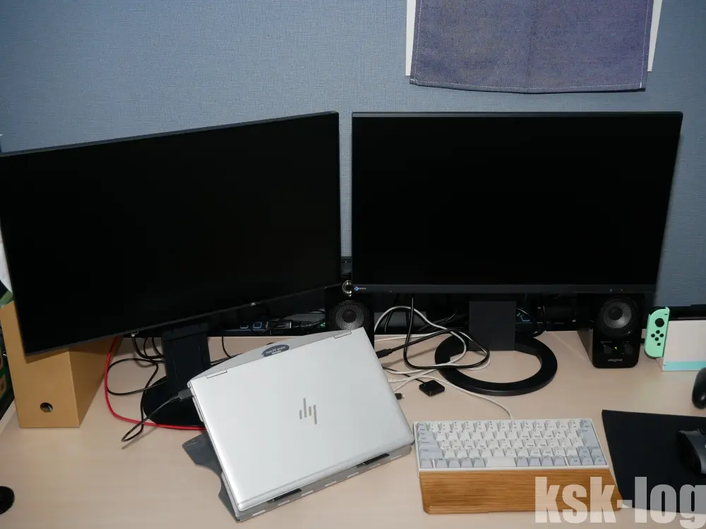 ノートPCはUSB-Cでの接続で電源、画面出力ともに接続の問題はなさそうで、これで電源分のケーブルが1本減りました。