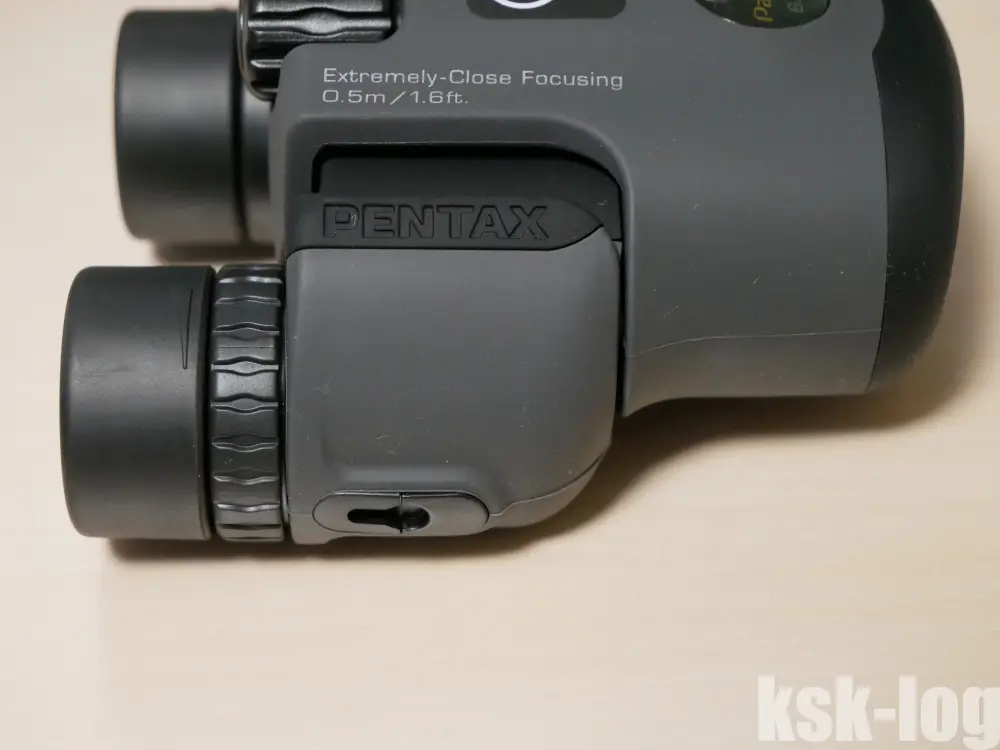 左右の視力が異なる人向けに視度調整が右側の接眼レンズのダイヤルで行えるようになっています。