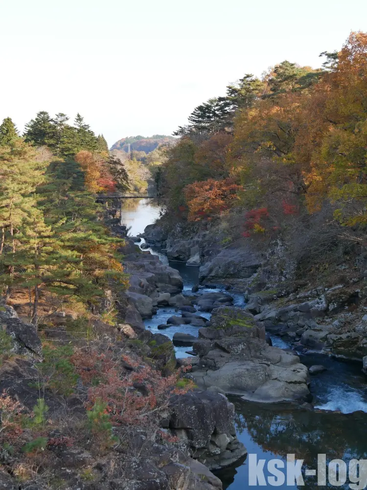 ともあれ厳美渓は名勝であり、紅葉との組み合わせもいい感じみたいですが、今回は1-2週間遅くてやや散っていました。
