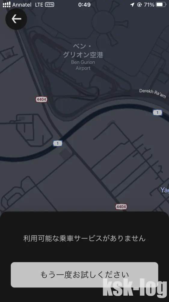 - GettはSMS認証問題で起動できず、Uberは利用可能サービスなしとして使えず