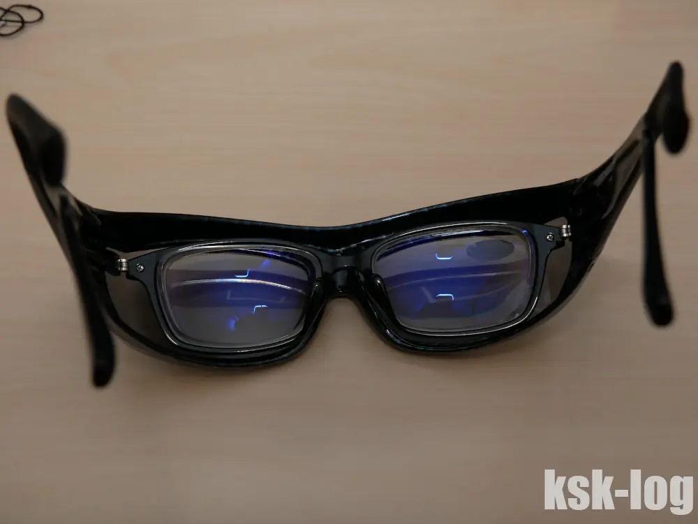 オーバーグラスでメガネを覆うため、フレーム自体は厚めです。