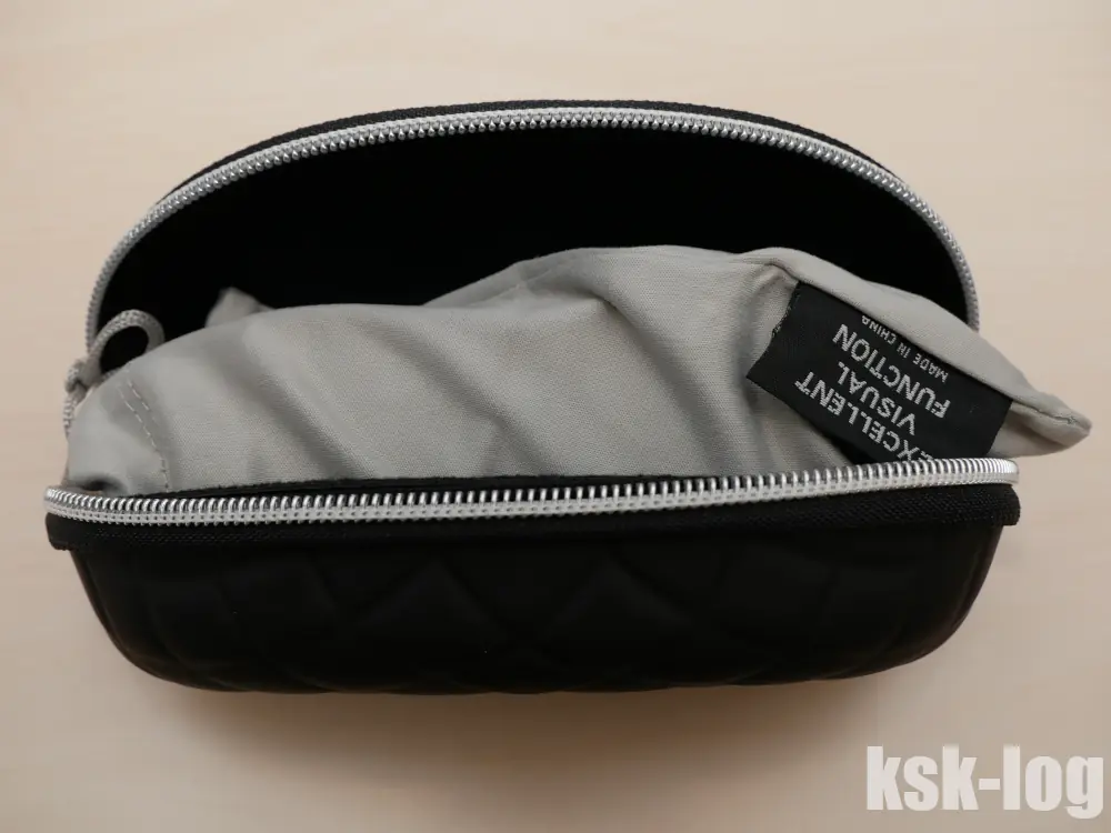 収納ケースAX-33(BK)は硬めの樹脂製(EVA系でしょうか?)で、しっかりサングラスを保護してくれそうなケースになっています。