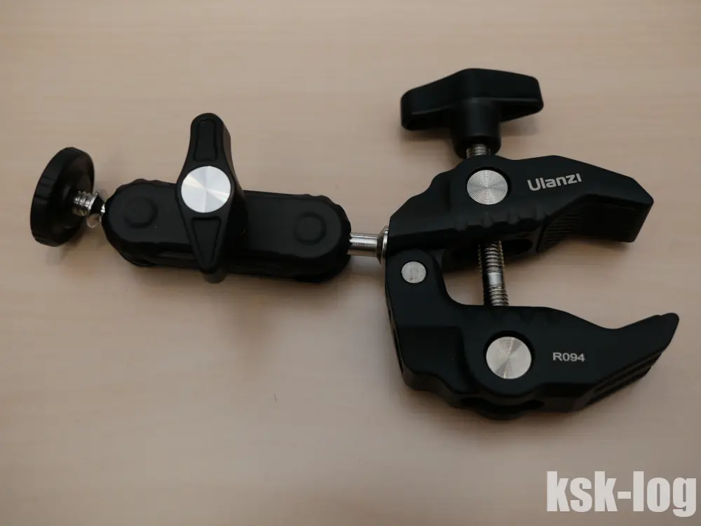 価格が手ごろで三脚ねじを持つクランプとして、UlanziのスーパークランプR094↗を見つけました。