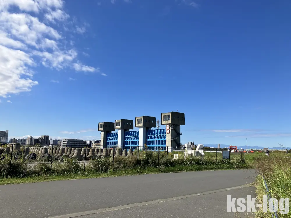 特に岩淵水門のあたりは路面がかなり荒れているので要注意です。Insta360を自撮り棒に装着していることもあり、バランス崩しても片手でリカバリーすることになって普段よりもっと安全走行気を付ける必要がありました。