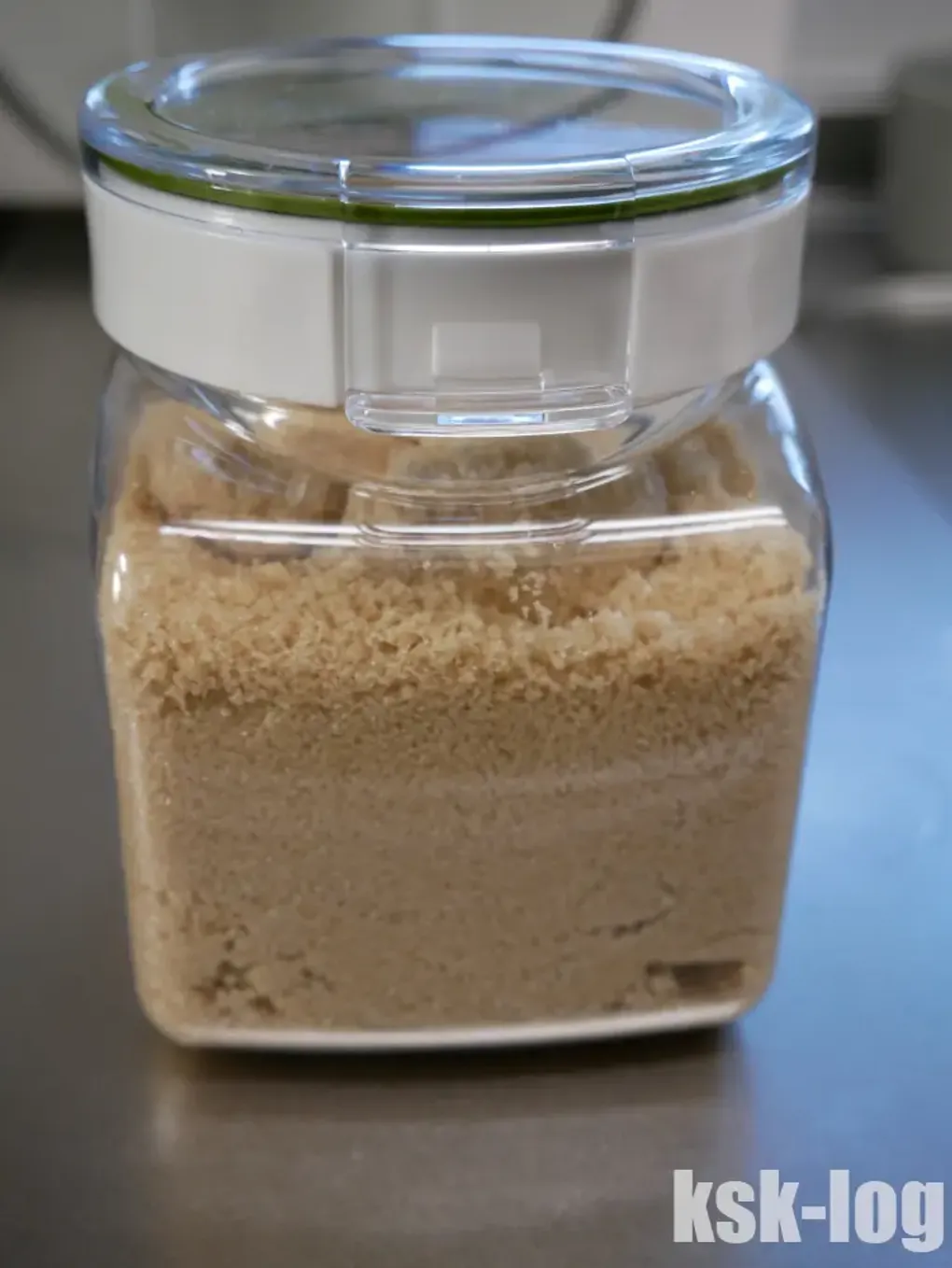 砂糖500gをちょうどよく収納できるフレッシュロック800mlは使い勝手の良い密閉容器という印象です。