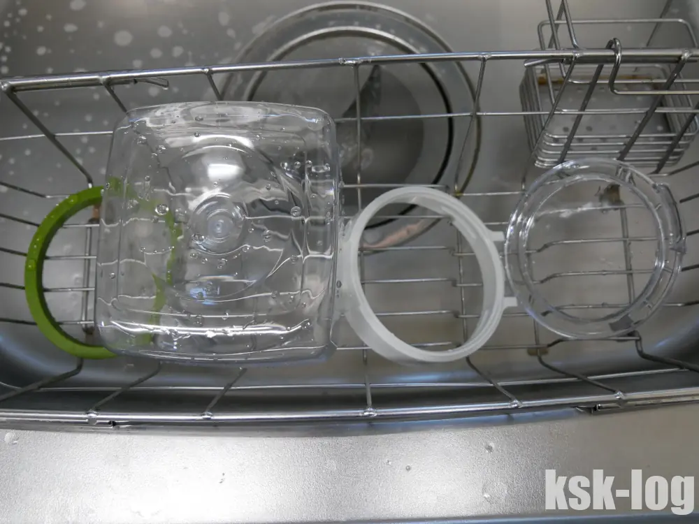 まずは分解して洗っておきます。本体、パッキン、蓋の3つのパーツに簡単に分解することができました。