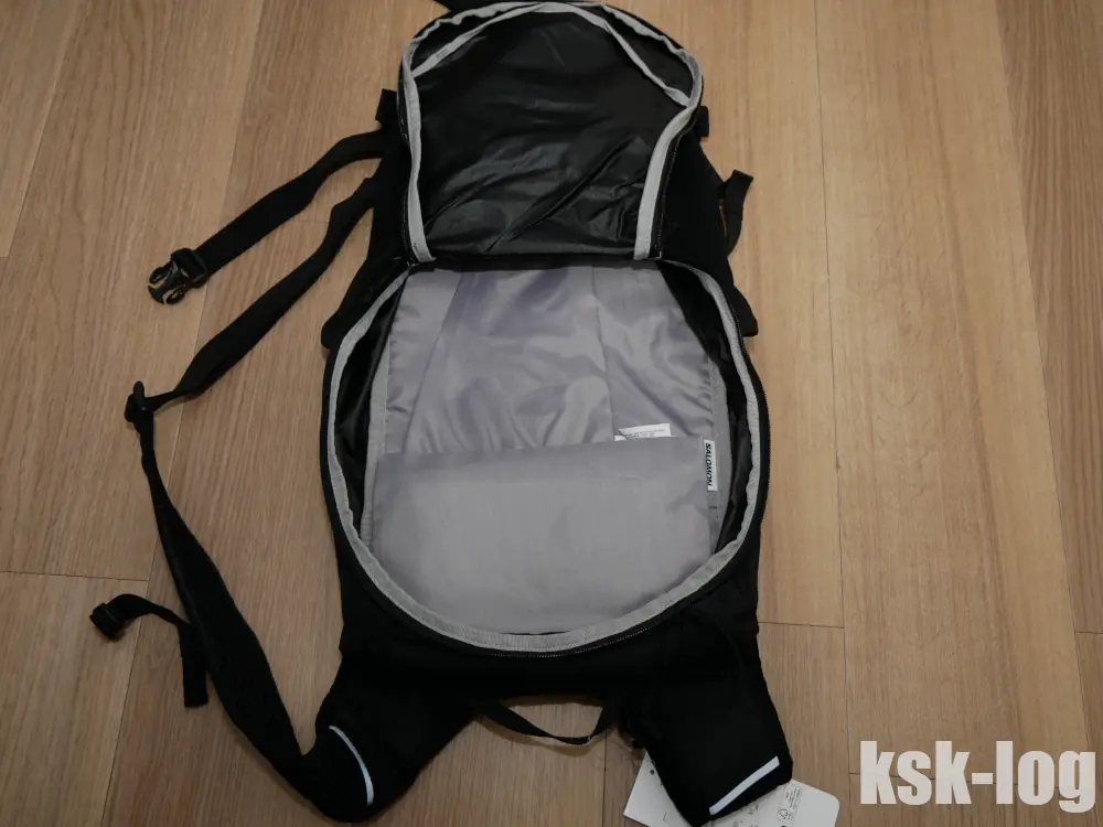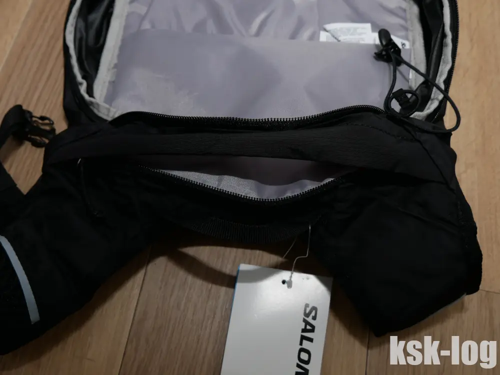 一方で、サロモンのトレイルブレイザー10は、本来トレラン用のリュックのようで生地もそれなりにしっかりして撥水性能はありそうで、ゲレンデスキーには問題なく使えそうです。チェスト・ウエストベルトの双方があるので滑走中に暴れる心配もなさそうです。