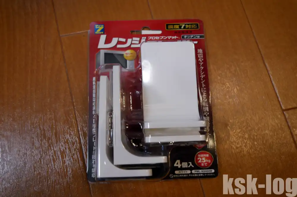 また、食洗機をスチールラックに固定するにはプロセブン レンジストッパー PML-N3404W↗を利用しています。4点で固定して耐荷重25kgあるらしいので、十分かとは思います。