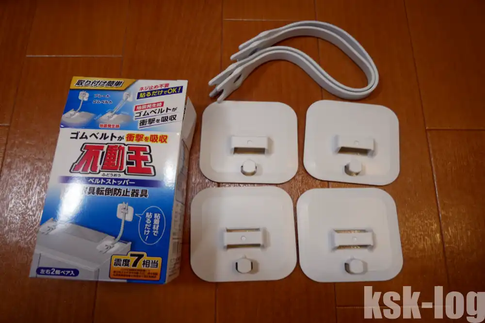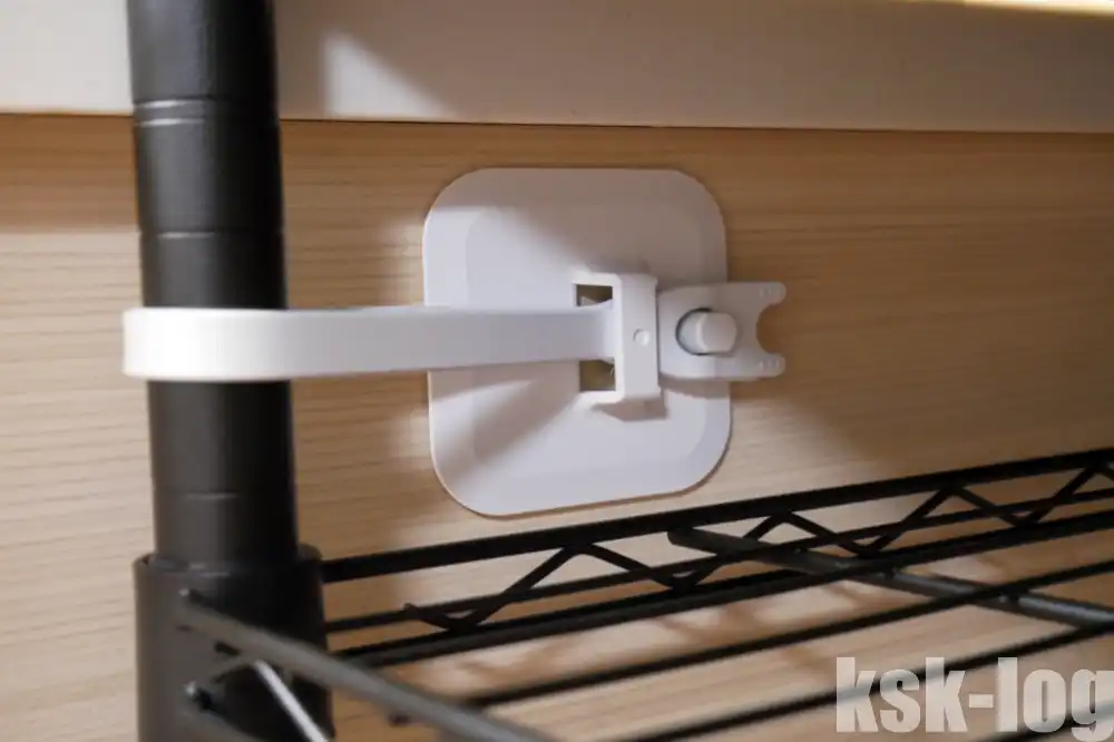 スチールラックに対しては不動王ベルトストッパー(FFT-015)↗を購入し、ラックのポールをシンクに固定しました。これは強力に固定する一方で賃貸でも利用可能で、ドライバーを使って剝がせるようです。