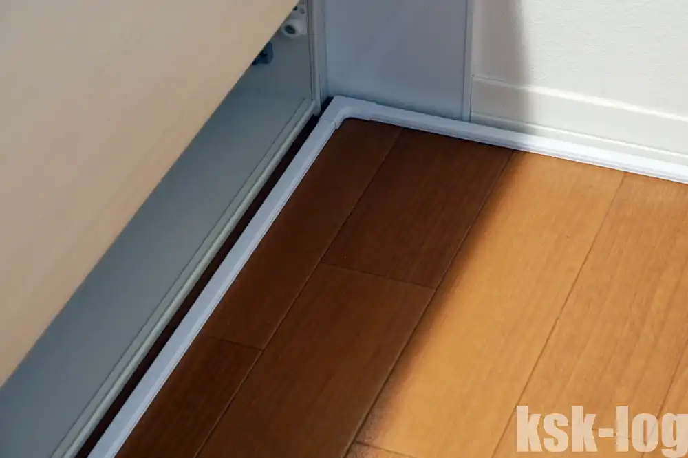 これらを組み合わせてキッチン下の床に沿わせる形で設置しました。これで足を引っかけることもないでしょう。