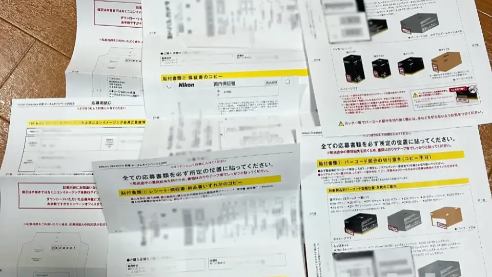 Z5II 24-200mmレンズキットとZ40mmそれぞれで書類を3枚準備します。この6枚をまとめて封筒に入れて投函しました。