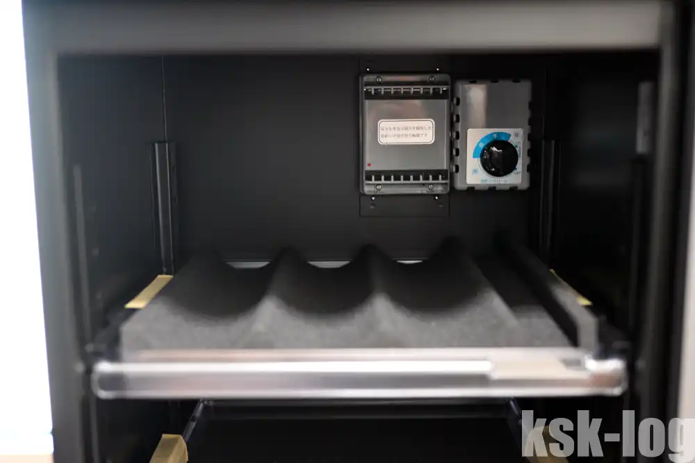 上段には湿度を設定できるダイヤルがありますが、カメラ用とであれば「標準」の位置でよさそうです。
