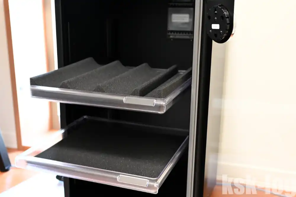 また、 扉の開閉時が結構気持ちいい です。ガラス扉がしっかりとした磁石で止まって高級感があり、単純なことですが開け閉めでテンションが上がりますね。