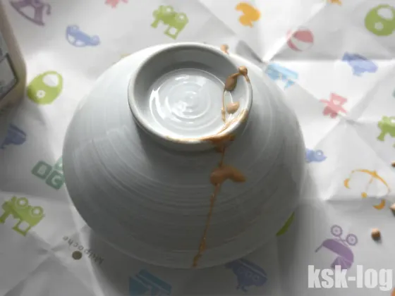 修復する際に、どこまで安全性の線引きを自身で行うか、納得の上で利用した方がよさそうですね。我が家では接着剤OK、絵の具は食器の外側ならOKと判断しましたが、これも一つの家庭の1意見にすぎません。